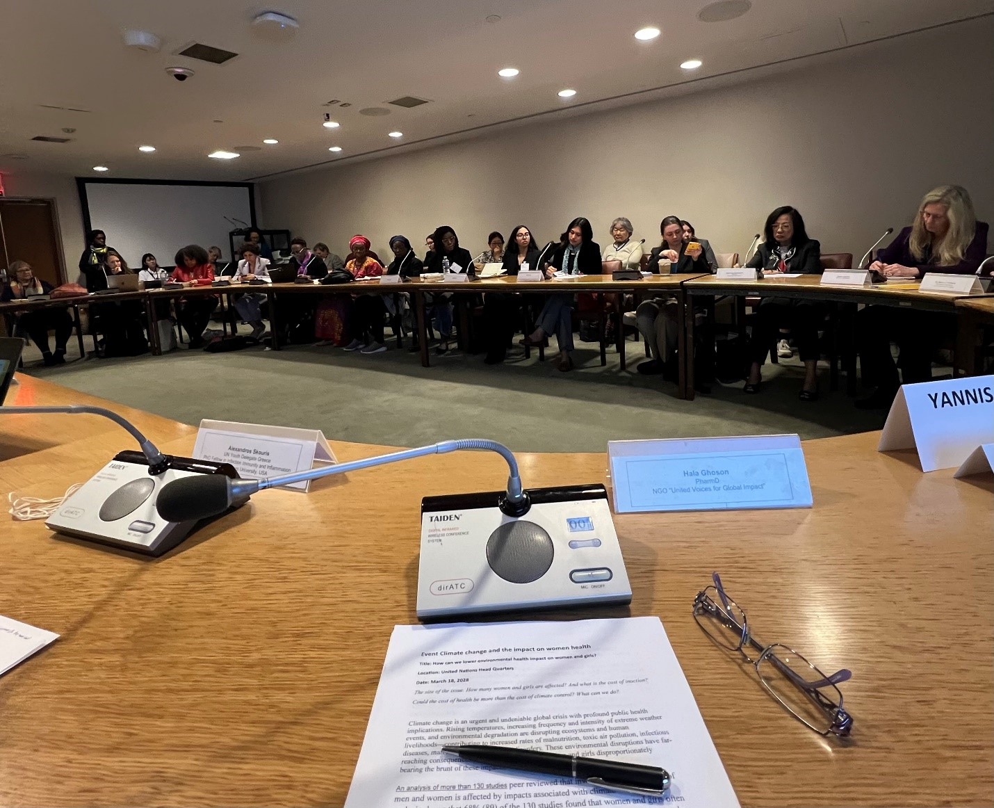 United Voices for Global Impact (UVGI) participated in CSW69 by proudly co-organizing and co-sponsoring an impactful side event at the United Nations Headquarters that shed light on the intersection between environment and Women’s health. The event, titled “How a Changing Natural Environment Affects the Health of Women and Girls, with Recommended Actions”, was a testament to UVGI’s unwavering commitment to amplifying the voices of women and girls affected by environmental degradation and advocating for policies rooted in equity and evidence.