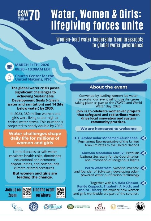 UVGI was honored to contribute to the global dialogue on gender equality and participate in a parallel event “Women-lead water leadership from grassroots to global water governance.” This important dialogue brings together global voices to highlight the critical role of women’s leadership in water governance—from grassroots community action to global policy discussions. The event also contributes to the broader conversations taking place during CSW70 and leading up to World Water Day 2026.