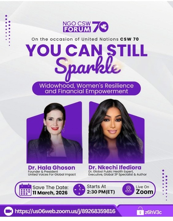 UVGI is also pleased to participate in an important dialogue at CSW70, standing alongside global partners to highlight the vital role of women in the discussion titled “Widowhood, Women’s Resilience, and Financial Empowerment.” This event will explore the strength, resilience, and economic empowerment of widowed women while amplifying voices and solutions that promote dignity, inclusion, and opportunity.